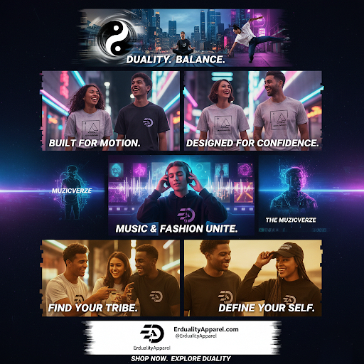 We aim to create the go-to online hub for comfortable, stylish apparel and engaging music experiences, built around the concepts of truth and duality — helping people look good, feel confident, and find balance in every moment.